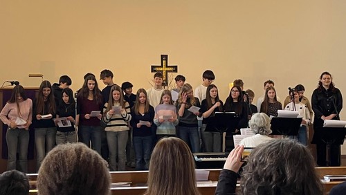 Unsere Konfis feierten am 22. März ihren Vorstellungsgottesdienst. Sie teilten mit der Gemeinde ihre Erlebnisse und Erfahrungen, die sie während ihrer Konfi-Zeit gemacht haben. Unter dem Motto "Mose, Thomas, Kunigunde und ich" schilderten Sie verschiedene Zugänge zum Glauben. Der Konfirmandenunterricht und die Freizeiten fanden mit Dörnigheimern und Bischofsheimern gemeinsam statt. Darum fand der gemeinsame Vorstellungsgottesdienst in der Evangelischen Kirche Bischofsheim, statt.